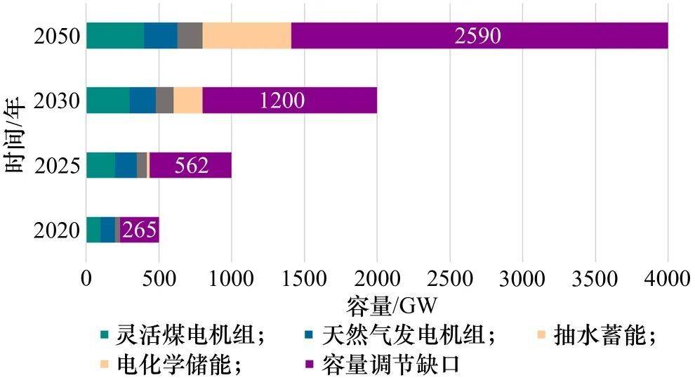 圖4 我國(guó)2020—2050年調(diào)峰容量缺口