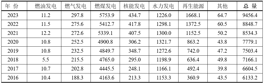 中國一次能源發(fā)電進(jìn)程(單位:TWh)