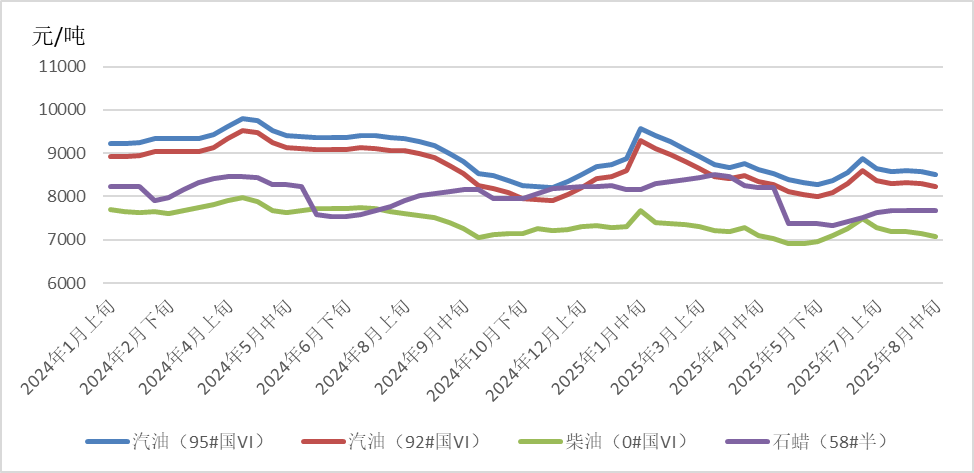 8月中旬,IEA上調(diào)全球石油供應(yīng)過剩預(yù)期,美國能源信息署(EIA)預(yù)測(cè)2025年美國原油日產(chǎn)量將創(chuàng)1341萬桶紀(jì)錄,夏季駕駛旺季臨近尾聲原油需求下降預(yù)期增強(qiáng),中美關(guān)稅暫停措施再延長90天等因素推動(dòng)國際油價(jià)延續(xù)下跌態(tài)勢(shì)。然而,市場(chǎng)對(duì)美聯(lián)儲(chǔ)9月降息的預(yù)期增強(qiáng),阿拉斯加美俄峰會(huì)并未取得實(shí)質(zhì)性進(jìn)展,俄烏局勢(shì)不確定性推升地緣風(fēng)險(xiǎn)溢價(jià),受上述因素影響,國際油價(jià)跌幅有所收窄。