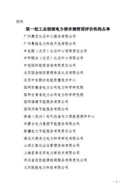 關(guān)于公布第一批工業(yè)領(lǐng)域電力需求側(cè)管理評(píng)價(jià)機(jī)構(gòu)的通知