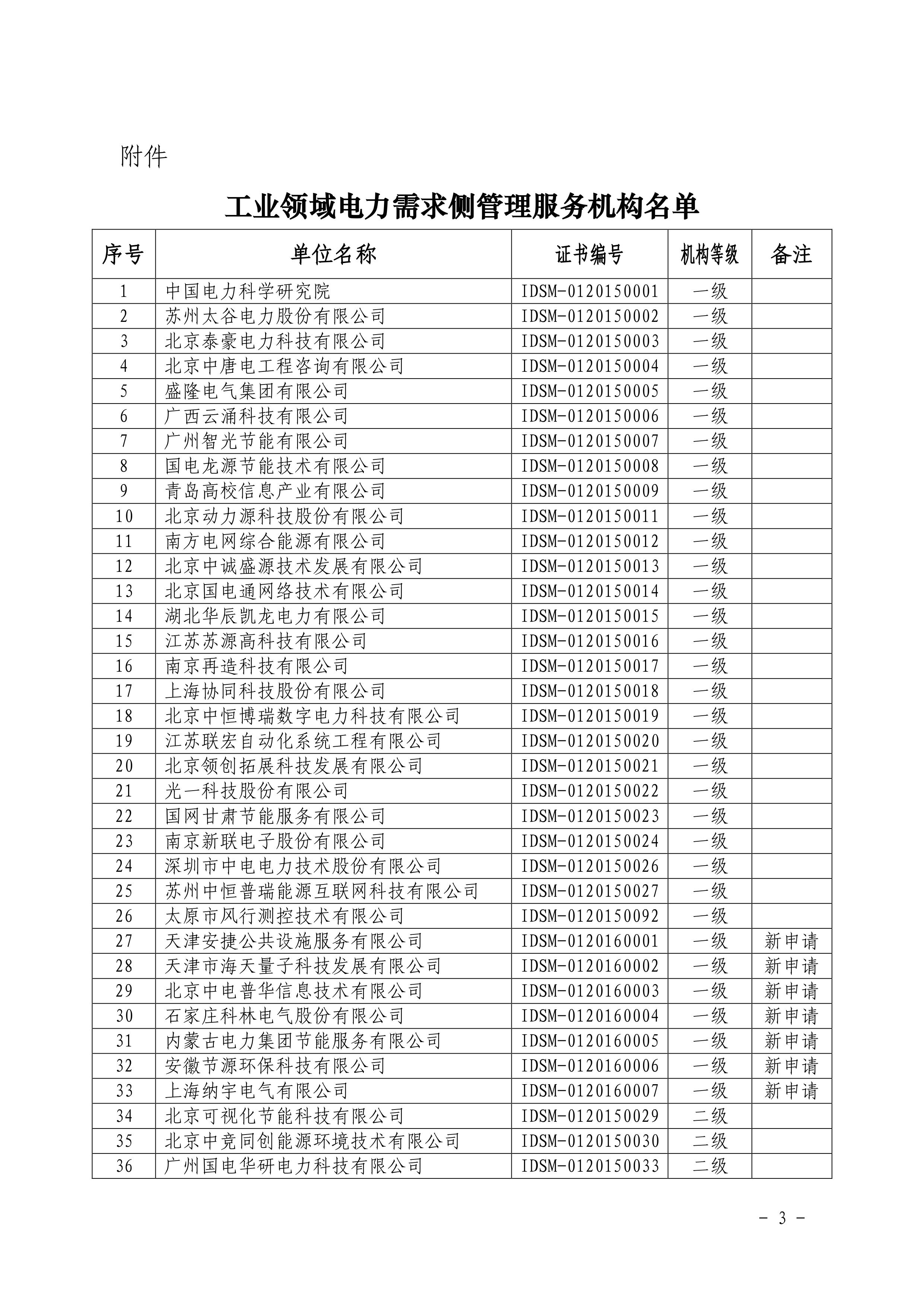 關(guān)于公布工業(yè)領(lǐng)域電力需求側(cè)管理服務(wù)機(jī)構(gòu)名單的通知
