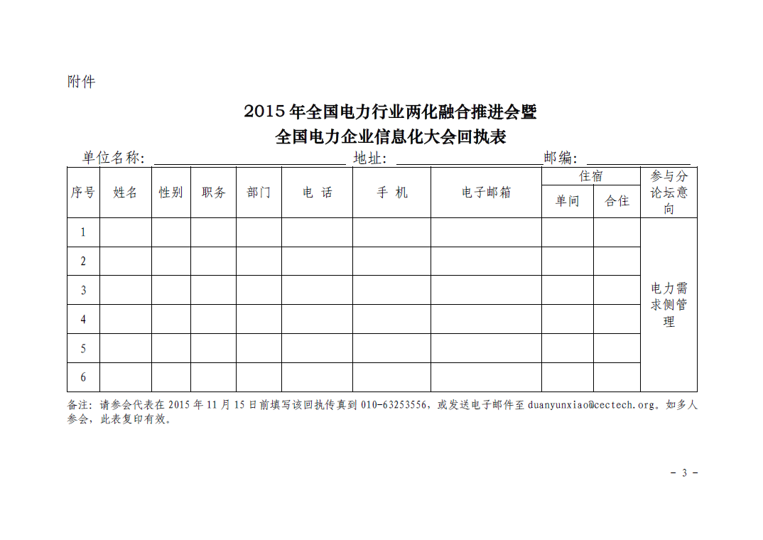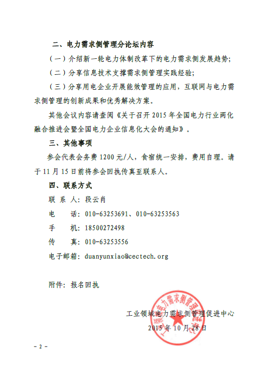 2.關于組織參加2015年全國電力企業(yè)信息化大會電力需求側管理分論壇的通知(工電促[2015]10號)